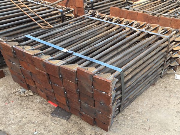 地腳螺栓一般用Q235、Q345,即為光圓的。好像我還沒有見到過用螺紋的情況,不過要是受力需要的話也未嘗不可。螺紋鋼(Q345)強度大,做螺母的絲扣沒有光圓的容易。對于光圓地腳螺栓而言,埋深一般為其直徑的25倍,然后做一個120mm左右長的90度彎鉤。